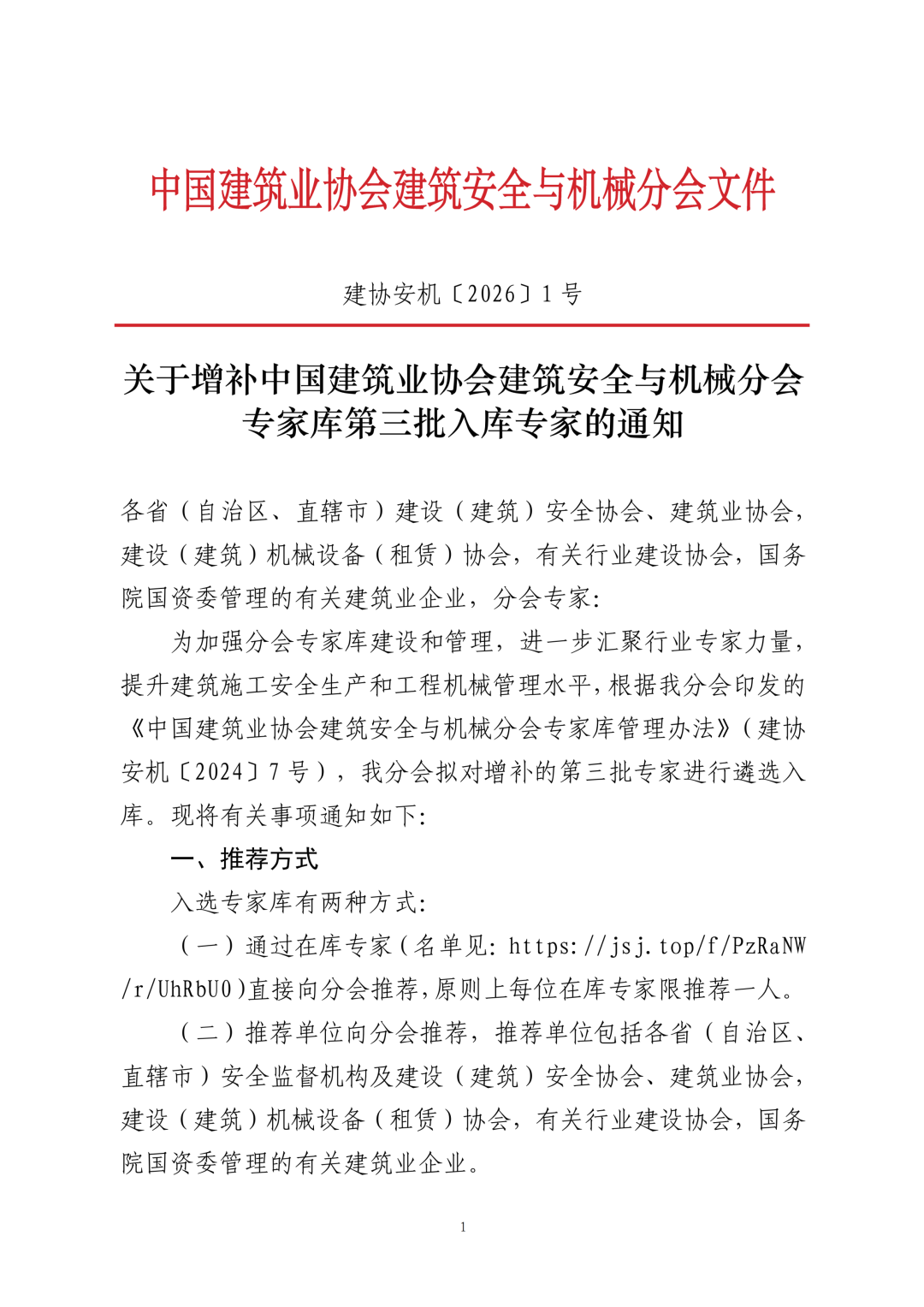 转发丨中国建筑业协会建筑安全与机械分会《关于增补中国建筑业协会建筑安全与机械分会专家库第三批入库专家的通知》