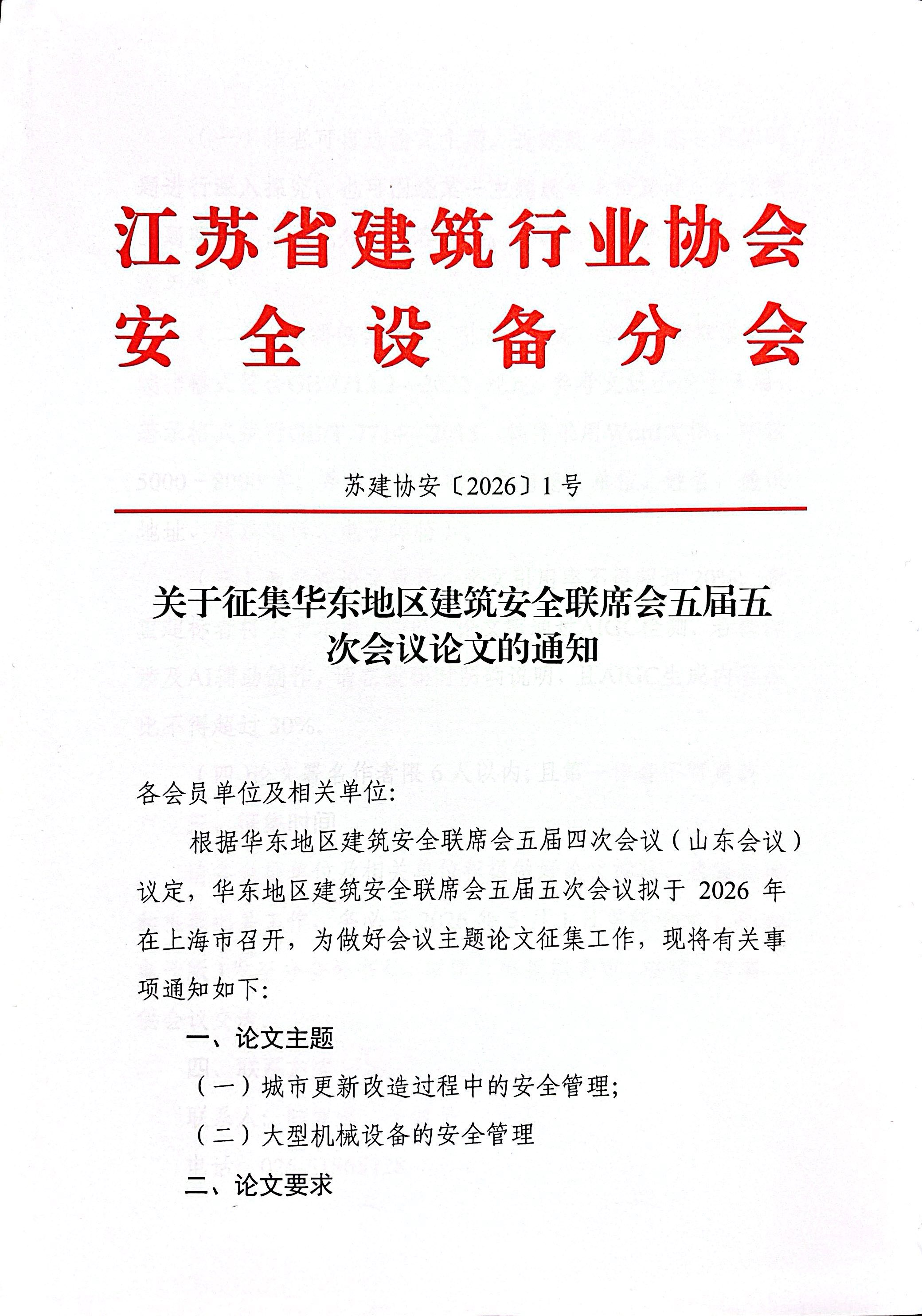 关于征集华东地区建筑安全联席会五届五次会议论文的通知
