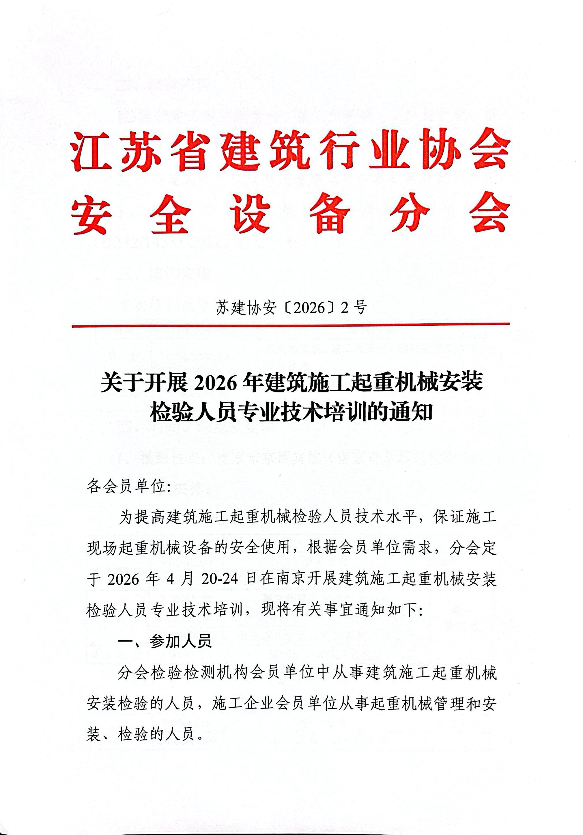 关于开展2026年建筑施工起重机械安装检验人员专业技术培训通知